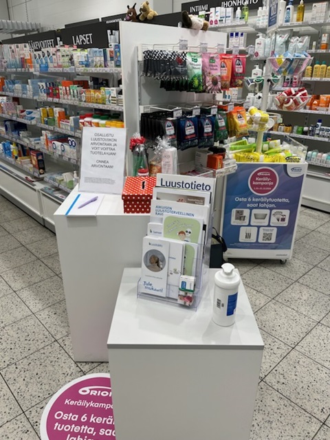 Luustotietoutta esillä Saimaanharjun apteekissa Luustoviikolla ja apteekin järjestämät arpajaiset